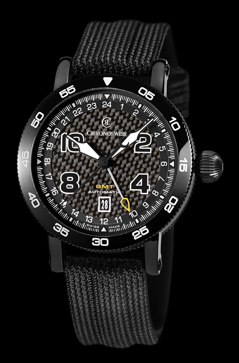 W ciągu ostatnich kilku lat, linia Timemaster przeżyła kilka istotnych zmian, a wszystkie jej dotychczasowe modele zostały dostosowane do komplementarnego, nowego projektu. Rok 2015 dla marki Chronoswiss jest kolejnym krokiem, tym razem z nowym modelem – Timemaster GMT. Po raz pierwszy w historii firmy do wykonania zegarka użyte zostało włókno węglowe – nowy materiał który w marce Chronoswiss świętuje swoją premierę na wyjątkowej tarczy tego czasomierza. Jest ona wykonana z kilku warstw tej niezwykłej odmiany węgla i ma najbardziej typową strukturę tkaniny,