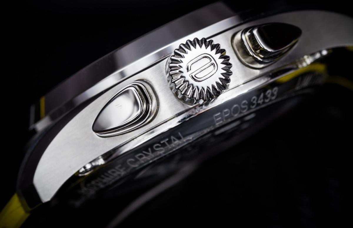 Mechanizm zegarka Chronograf EPOS Drift Masters LE z linii EPOS SPORTIVE 3433 bazuje na słynnym, charakteryzującym się doskonałymi parametrami użytkowymi wyrobie Valjoux 7750.