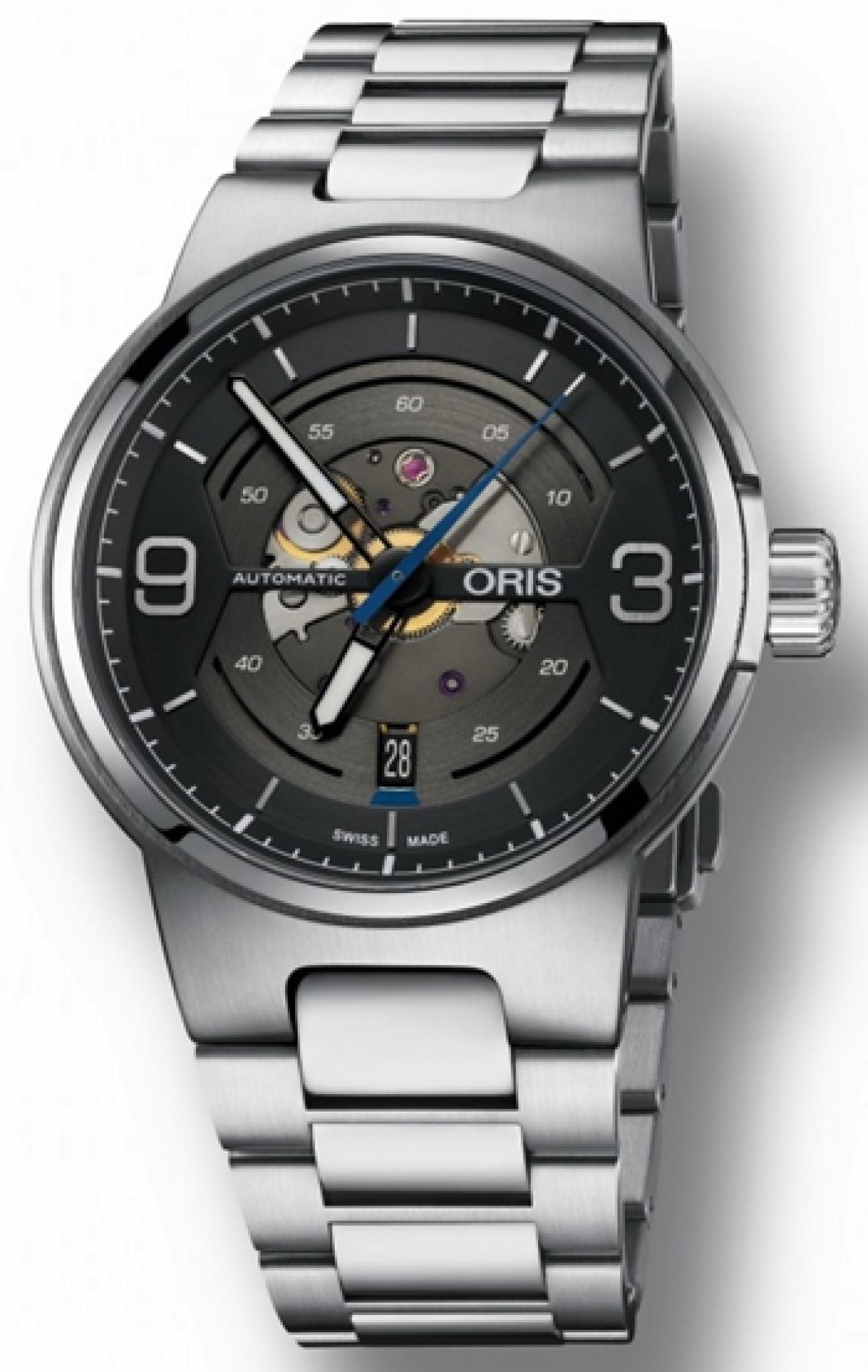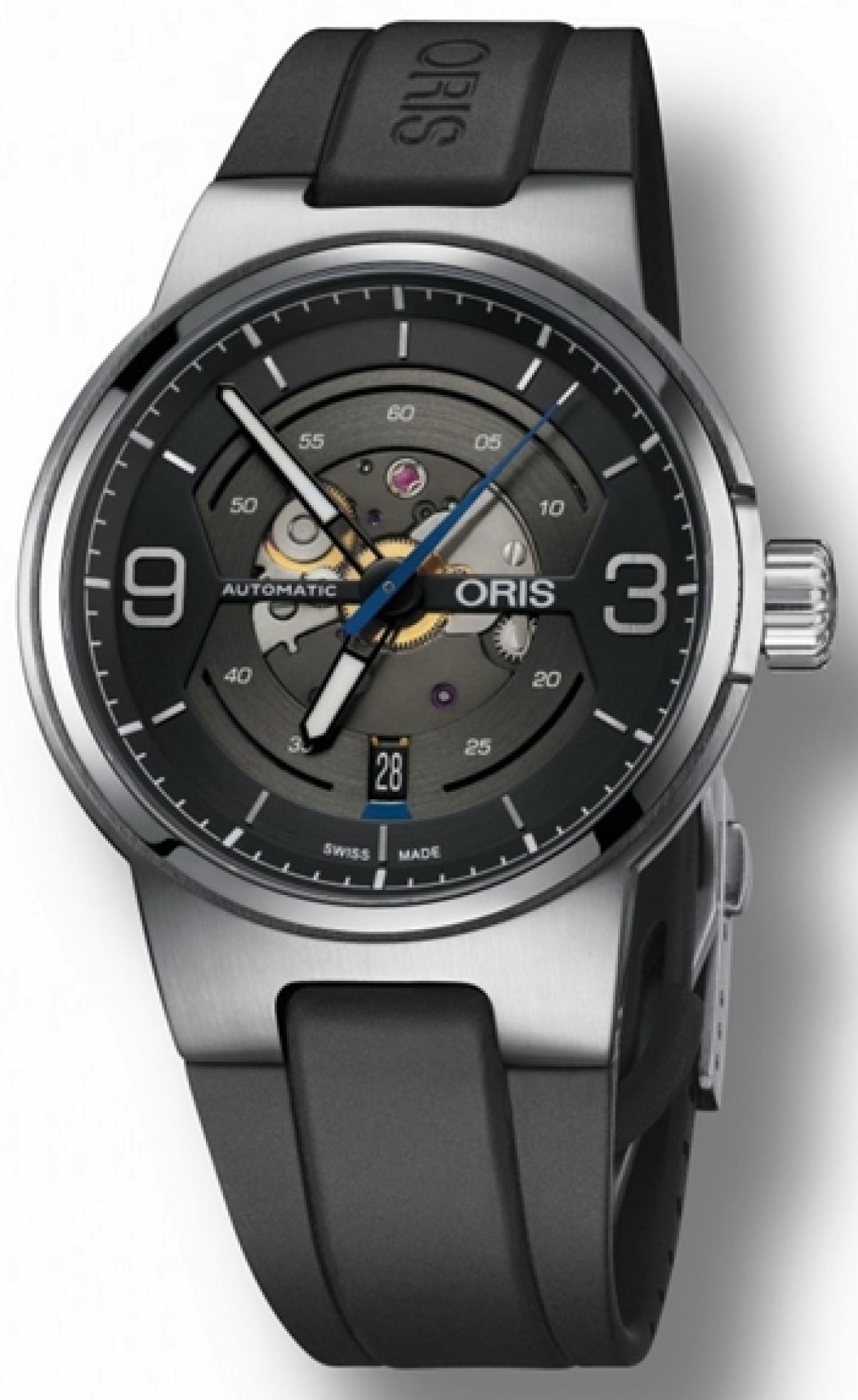 Kluczowym elementem tego modelu jest dwuczęściowy cyferblat który ma potęgować odczucia wizualne, projektanci Oris chcieli, aby zegarek posiadał jeszcze bardziej sportowy i techniczny charakter. Dodatkowym atutem jest częściowo przeszklona tarcza przez którą widać szkieletowe elementy mechanizmu, pokryte powłoką w kolorze antracytowym. Doskonałą możliwość obserwacji „serca” zegarka – Sellita SW 200-1 – daję nam również transparentny dekiel.