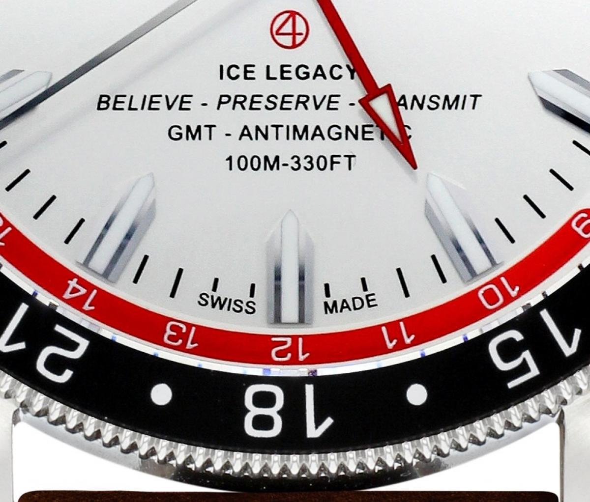 Na tarczy GMT jest także więcej informacji. Zapisane jest hasło Believe, Preserve, Transmit – określające wsparcie Alpiny dla projektu i działań Borge Outslanda i Vincenta Colliarda w zakresie ochrony lodowców. Alpina Ice Legacy Project.