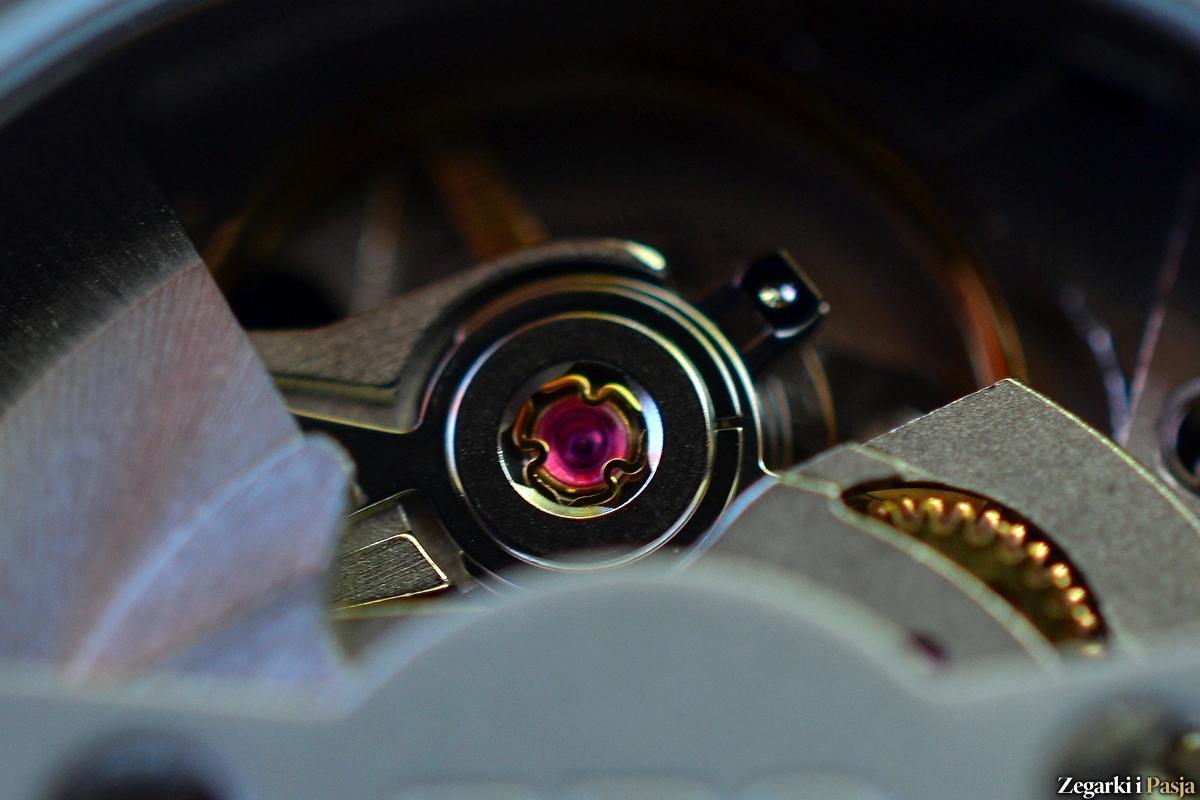 Byłoby jeszcze lepiej, gdyby wskazówka minutowa, dość szeroka i płaska, była dłuższa i obracając się wchodziła pod indeksy. Niestety, jej długość pozwala jedynie sięgnąć do krawędzi pola z pasami genewskimi – to oczywiście kształt wskazówek znany z innych modeli linii, jedna zwykle na krawędzi jest jeszcze podłużny grot wydłużający wskazówkę.