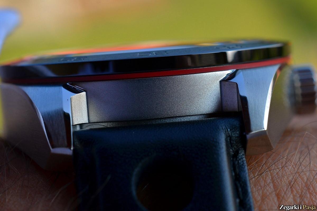 Zapewne 20 milimetrowy pasek, zastosowany w tym zegarku, zupełnie wystarczająco zapewnia dobre ułożenie na nadgarstku, jednak dodatkowe 2 mm byłoby bardziej spójne ze średnicą zegarka, jego grubością i wspomnianym poczuciem masywności.