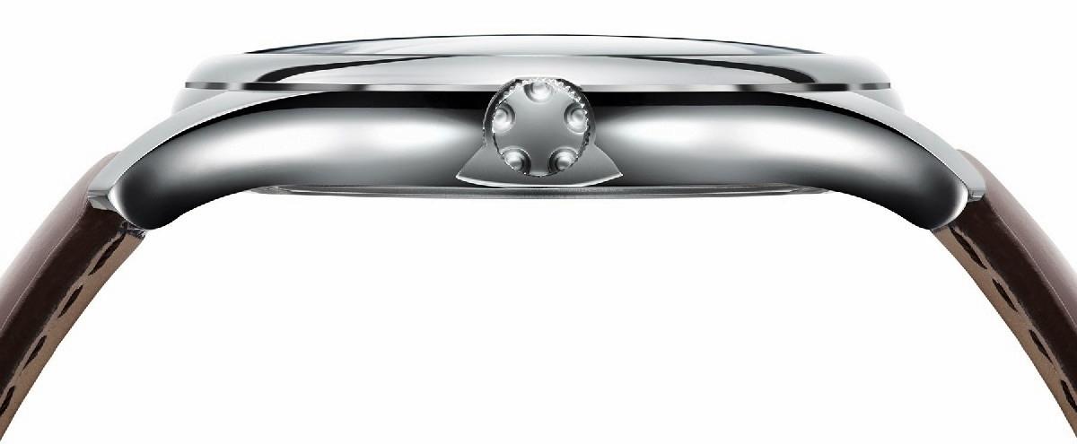 Łagodnie opadające uszy schodzą poniżej linii dekla – co pozwala dokładnie objąć rękę i jeszcze bardziej optycznie spłaszczyć czasomierz.