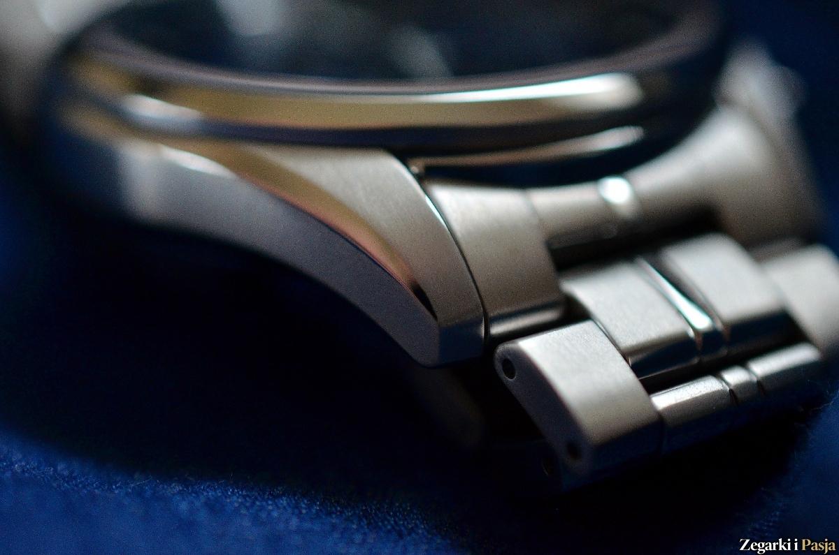Czasomierz dostarczany jest na bransolecie z pełnych ogniw, szczotkowanej z wąskim paskiem na środku, który jest polerowany. Wszystkie linie, odcięcia bardzo ostre i równe.