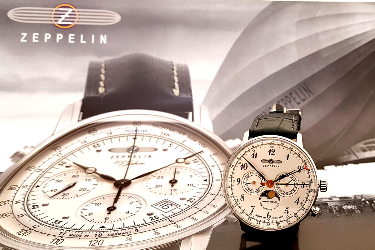 Swoją nazwą zegarki Zeppelin nawiązują do wielkiego pioniera lotnictwa, którego dokonania zrewolucjonizowały światową komunikację podniebną na samym początku XX wieku. Jest nim Ferdynand hrabia Zeppelin. To on jest pomysłodawcą i konstruktorem legendarnych sterowców „Zeppelin” projektowanych i produkowanych w Friedrichshafen w Niemczech.