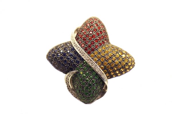 Broszki wracają do łask- elegancki dodatek w stylu vintage, nie jedna trendsetterka ma go w swojej szafie. Brosz może być elementem dopełniającym biurowy strój nadając mu finezji, łagodząc surowość lub dodatkiem do zwariowanej i mocno modowej stylizacji. Nasza brosz, misternie wykonana przez jubilera, łącząca w sobie brylanty, szmaragdy, rubiny i szafiry jest pięknym dodatkiem, ale również sposobem ulokowania gotówki. Szlachetne kruszce i metale od niepamiętnych czasów były dobrym zabezpieczeniem gotówki, jak i wartościowym spadkiem dla następnych pokoleń.