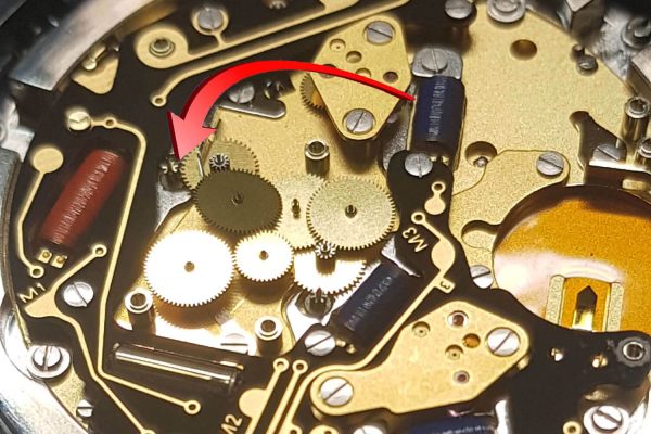 Jak się okazało było to zasługą „naprawcy-oprawcy” – osoby, która przy okazji wymiany baterii przejechała śrubokrętem po płycie mechanizmu przecinając uzwojenie cewki silnika skokowego.