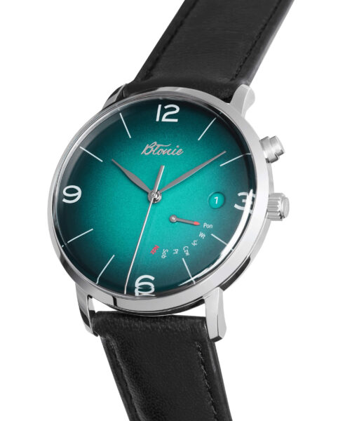 To kolejna nowość marki Błonie – takiego typu zdobienia marka nie wykorzystała dotychczas w żadnej innej kolekcji, skupiając się jedynie na jednolitych, różnokolorowych cyferblatach.
