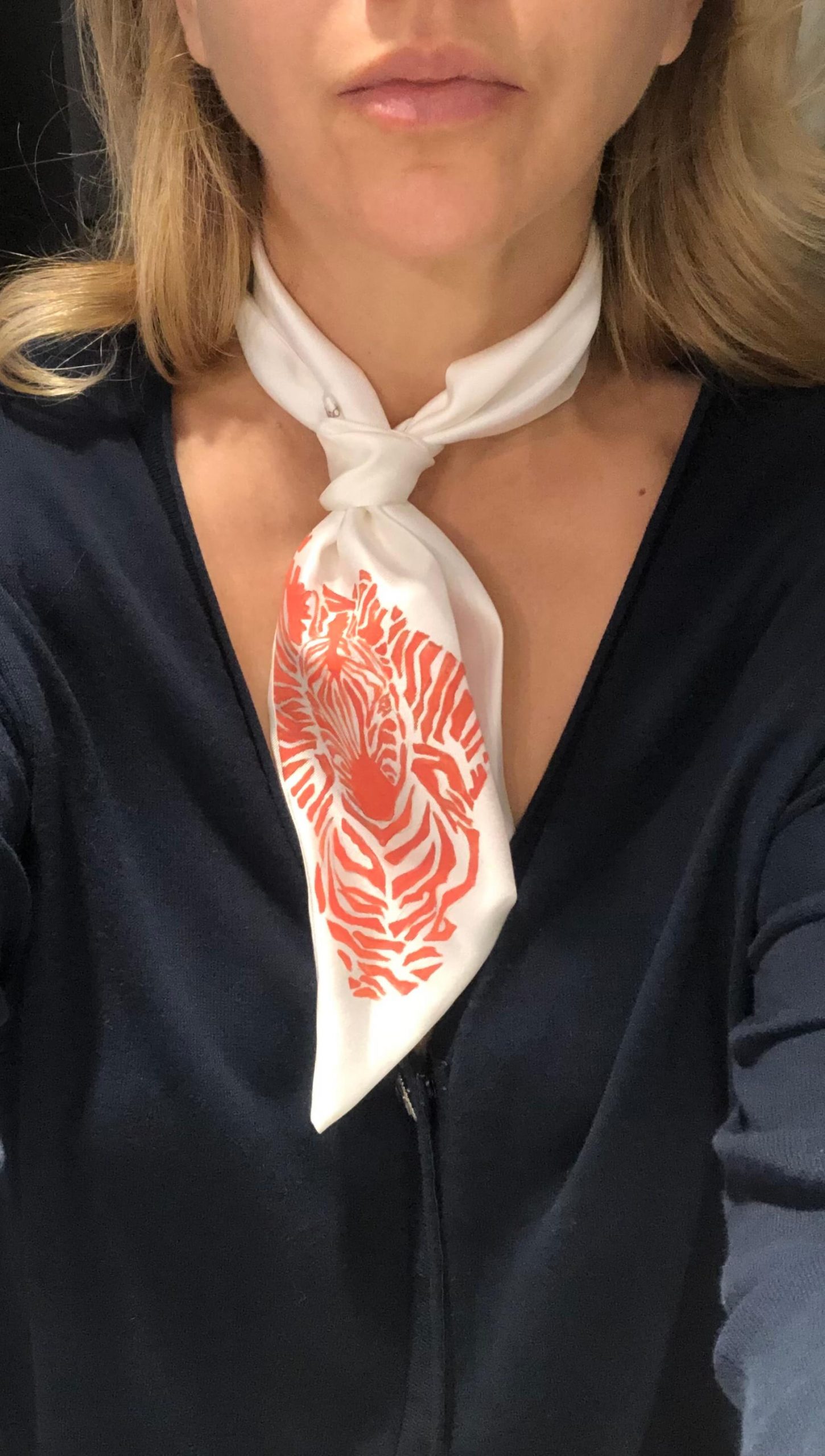 Piękny dodatek – pojedynczy egzemplarz, wykonany z jedwabiu 100%, ręcznie malowany wzór czyni go unikatowym.