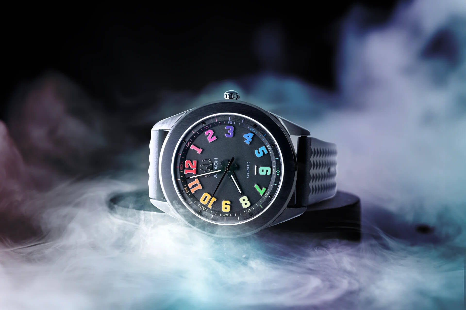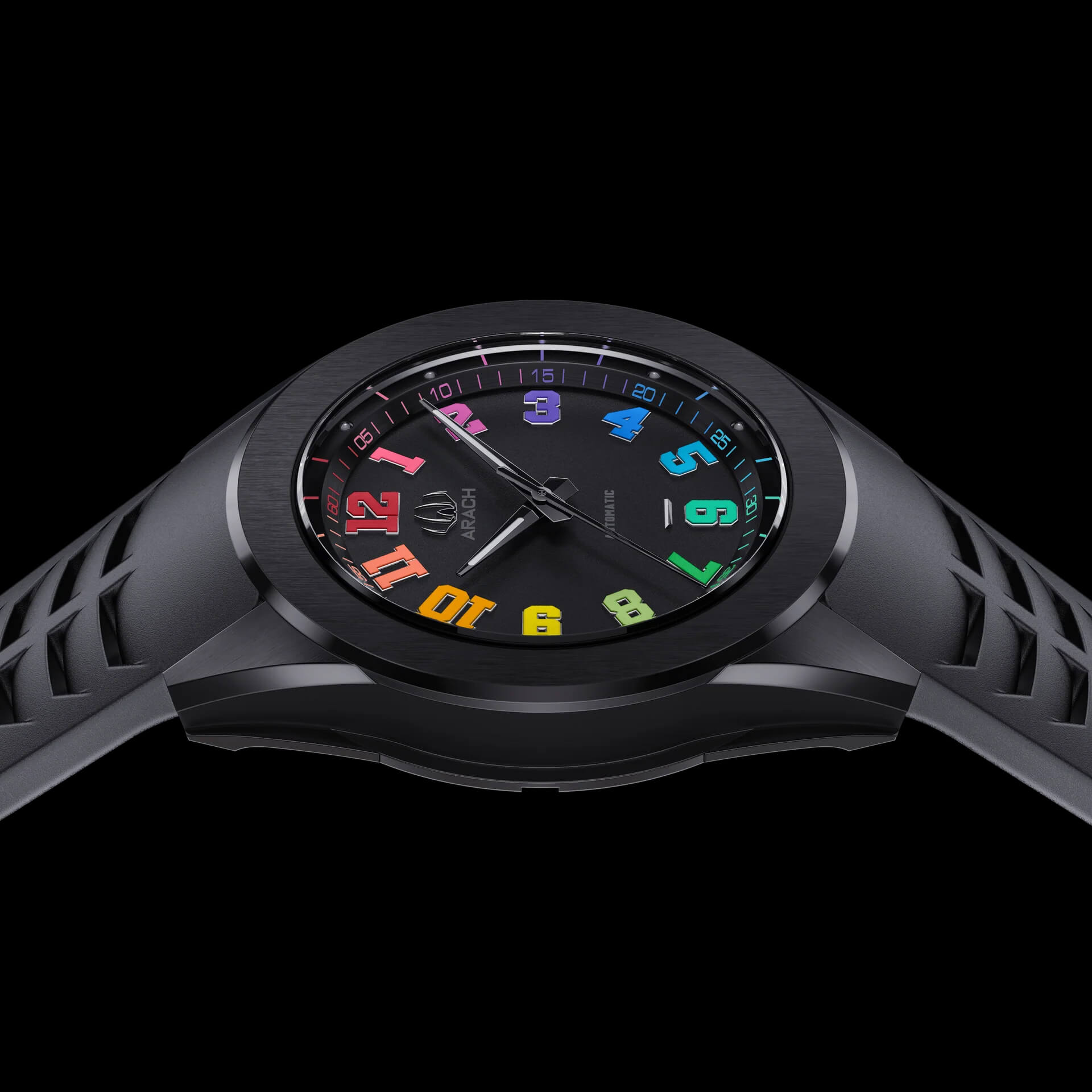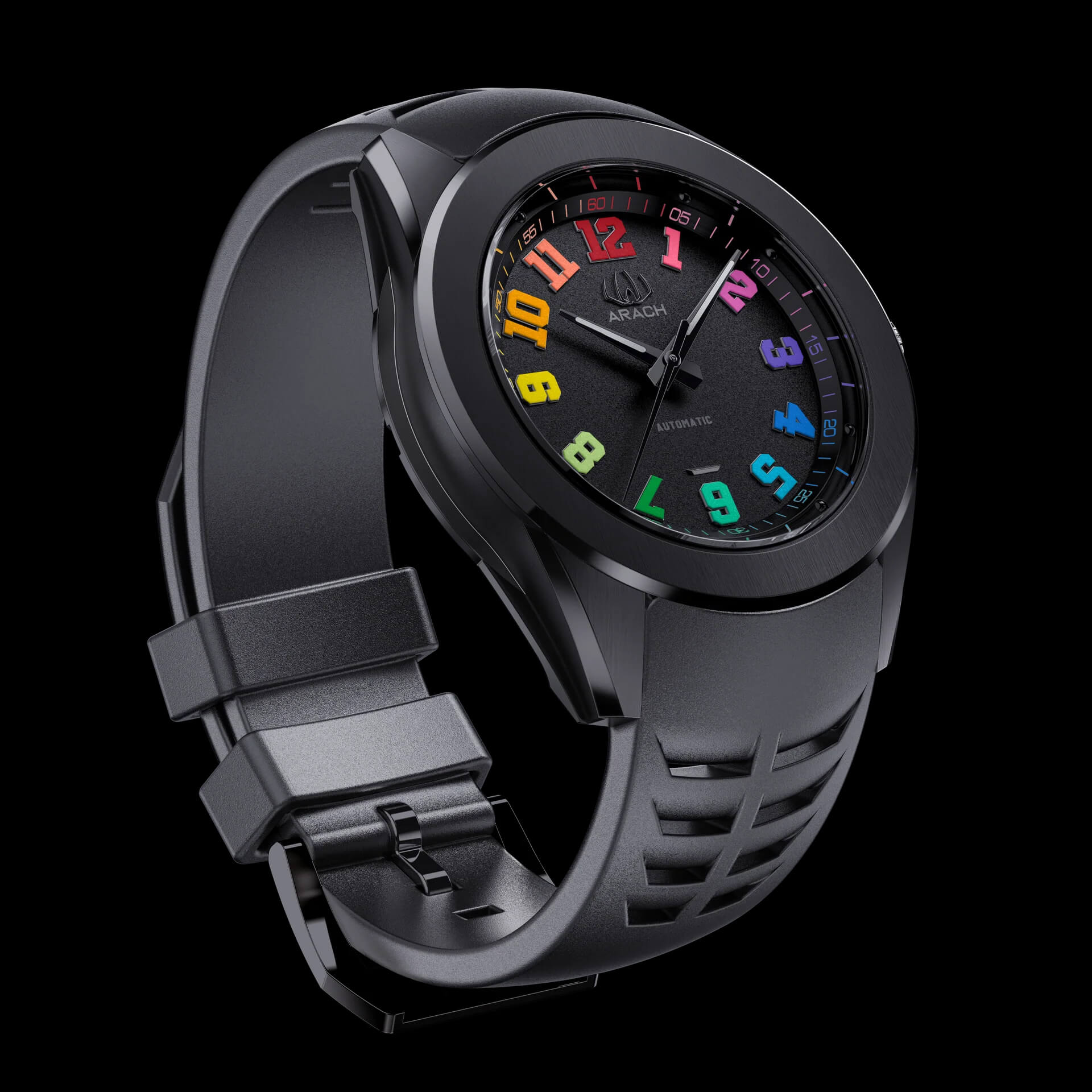 A69H to sportowy model o bardzo ciekawej stylistyce, z pierwszej limitowanej serii marki Arach. Wielką jego zaletą jest czytelność tarczy, którą docenią osoby poszukujące wyrazistości wskazań. To co zasługuje na szczególna uwagę to grubość – wysokość koperty, która jest stosunkowo płaska jak na zegarek z automatycznym naciągiem sprężyny (13mm) Stylistyka nowego zegarka jest unikatowa, a jakość wykonania stoi na bardzo wysokim poziomie. Uwagę przyciągają w tym zegarku także wielokolorowe indeksy, które do tej pory nie gościły na cyferblacie w takim wydaniu.