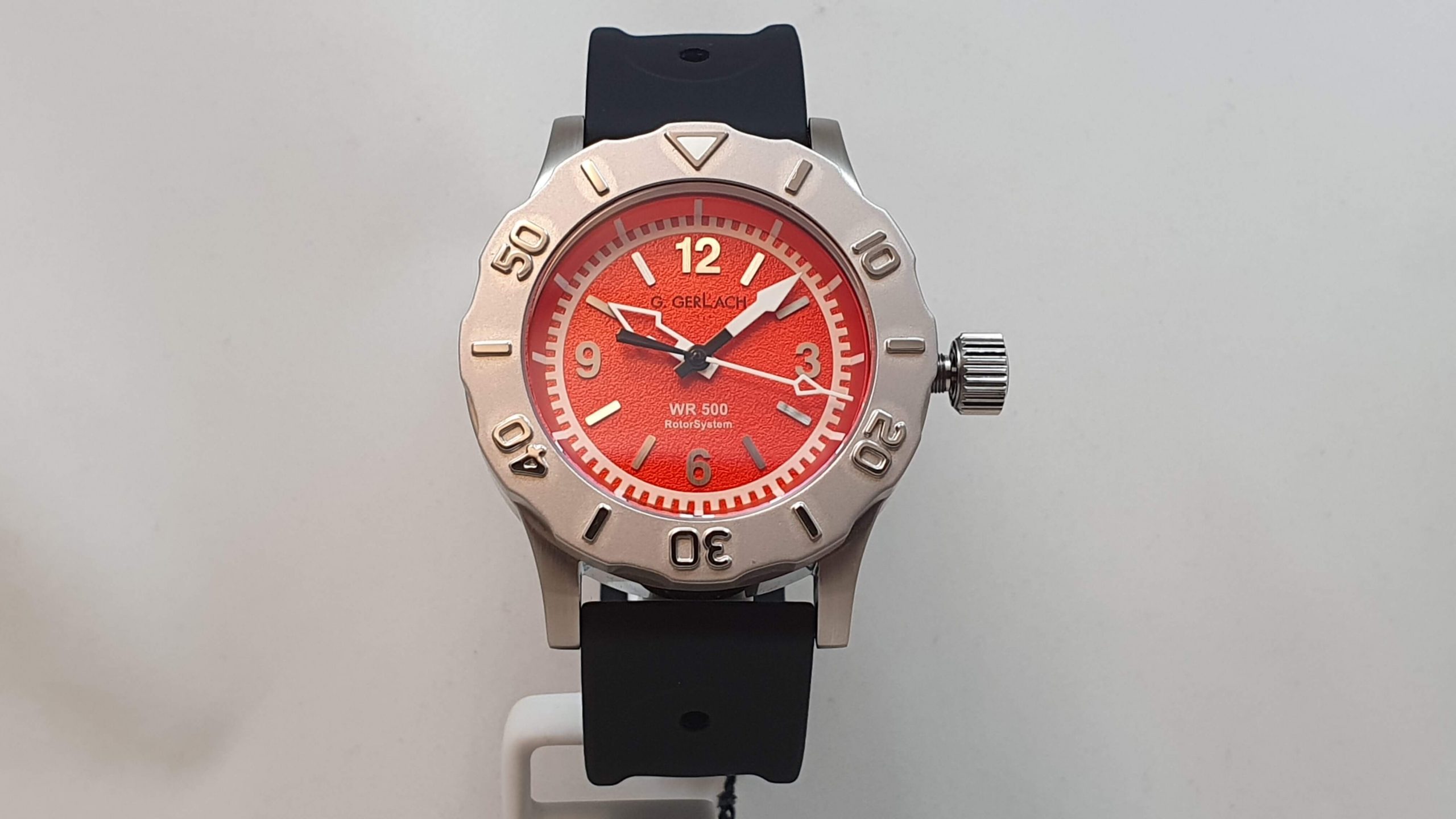 Gerlach Bathyscaphe WR500 Pomarańczowy jest nie tylko doskonałym, profesjonalnym modelem nurkowym to również świetny model sportowy, który odnajdzie się w każdej sytuacji. Będzie znakomitym zegarkiem dla wszystkich Panów lubiących tego typu stylistykę. Należy zwrócić uwagę na atrakcyjna cenę, szwajcarskie modele o takich parametrach kosztują nie jedno krotnie fortunę.