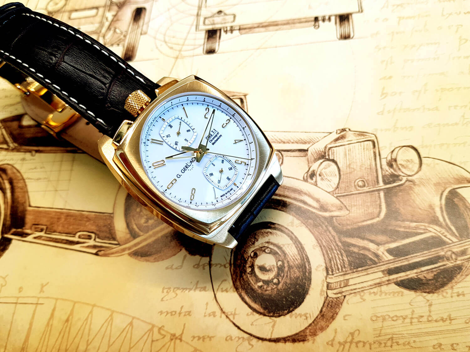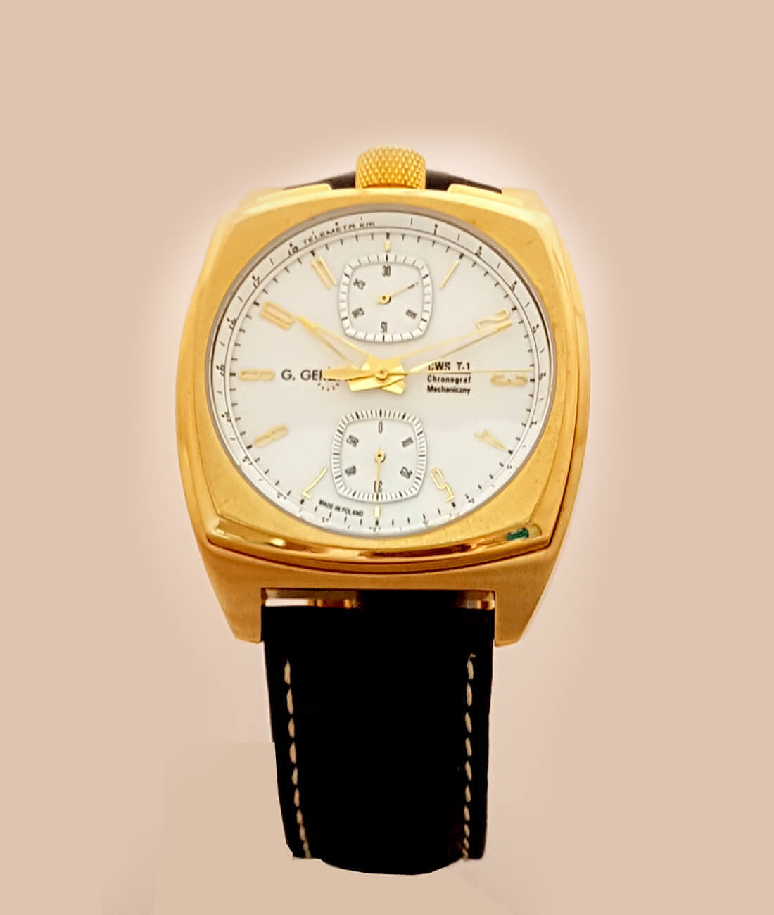 Gerlach CWS T-1 Chronograf Złocona koperta Biała tarcza