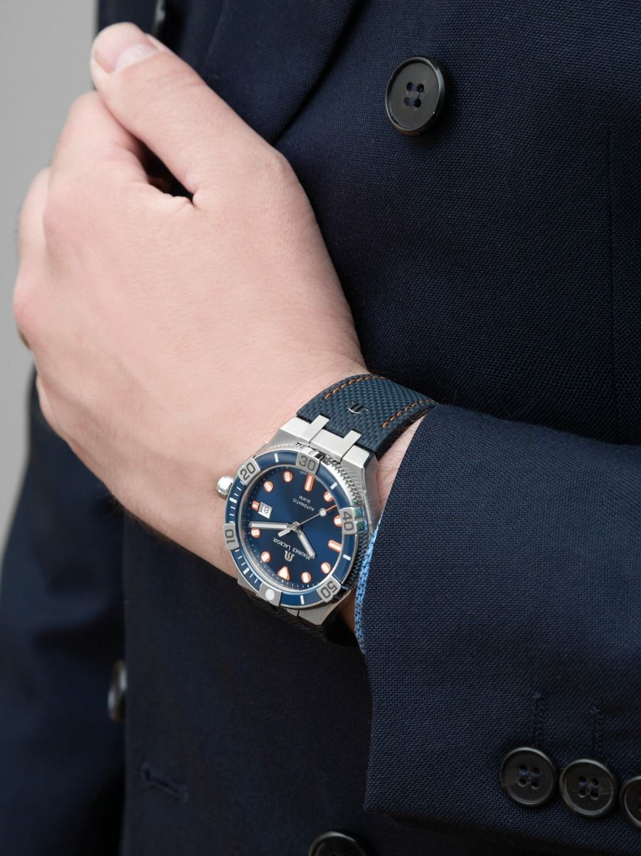 Limited Edition AI6058-SS002-431-1 posiada podwyższoną do 300 metrów szczelność zakręcaną koronkę i w komplecie tekstylny niebieski pasek całość napędza solidny szwajcarski mechanizm automatyczny, który gwarantuje właściwość wskazań przez wiele lat.