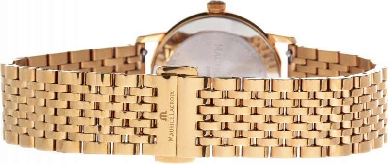 Maurice Lacroix Eliros EL1094-PVP06-150-1 to zegarek posiadający złoconą metodą PVD kopertę oraz bransoletę w kolorze różowego złota. Średnica wykonanej ze stali szlachetnej koperty wynosi 30 milimetrów. Posiada ona szafirowe szkło i wodoszczelność określoną na 30 m.