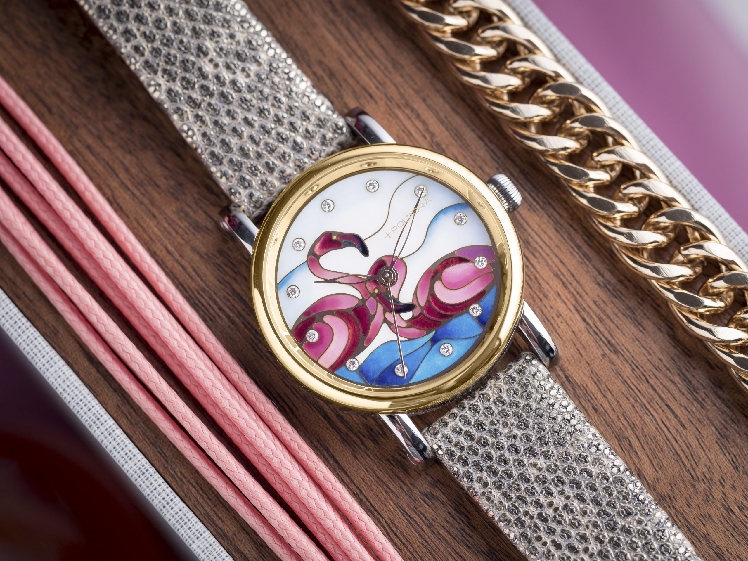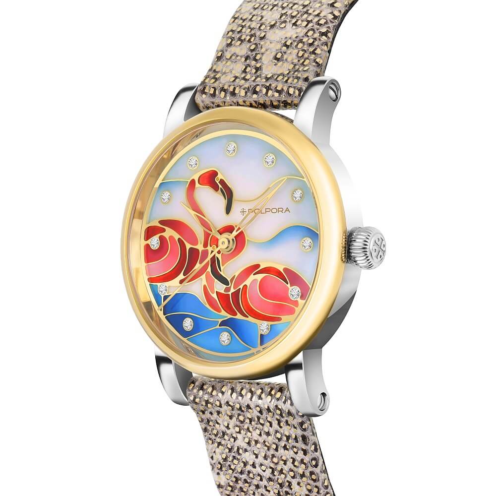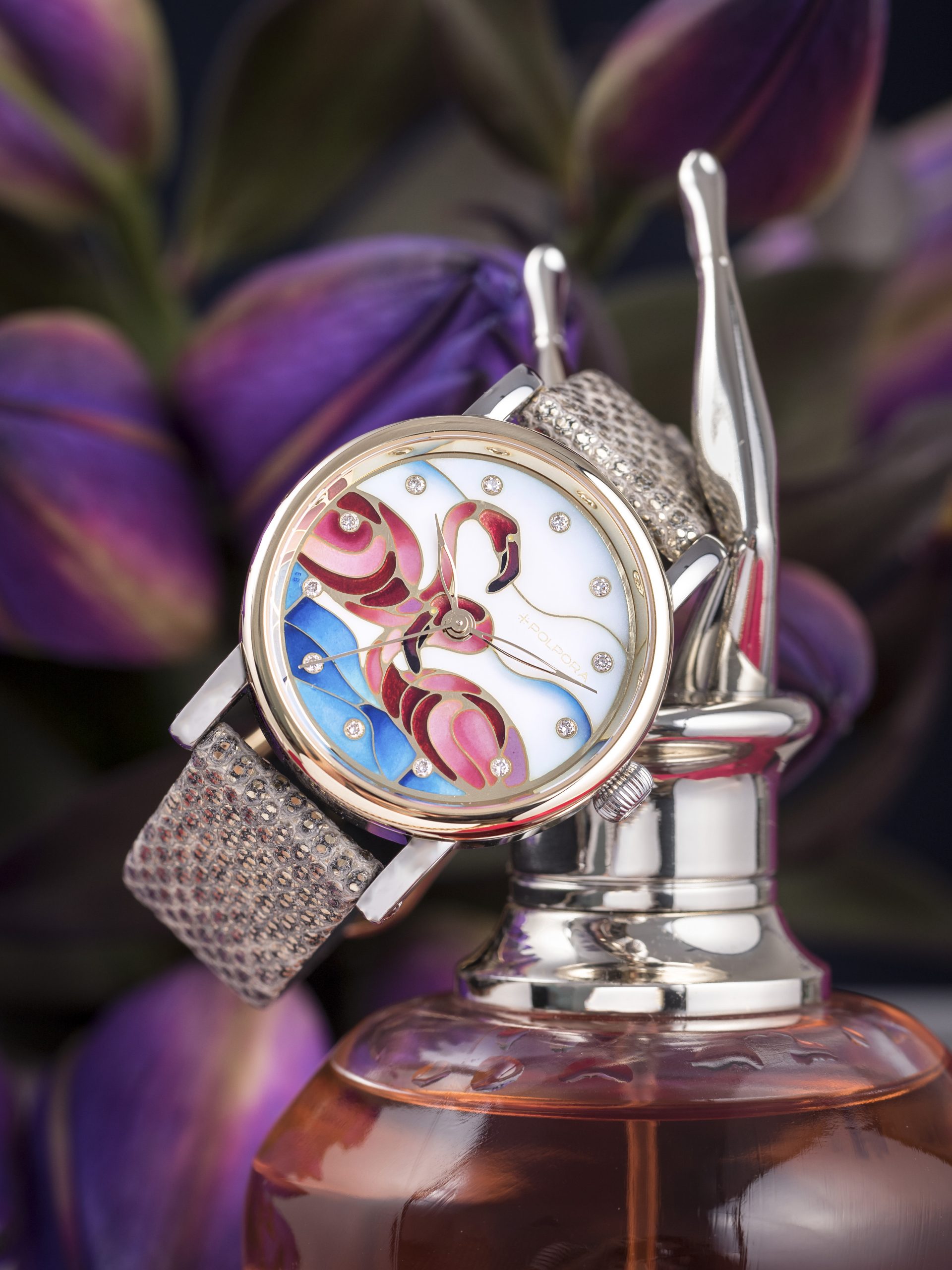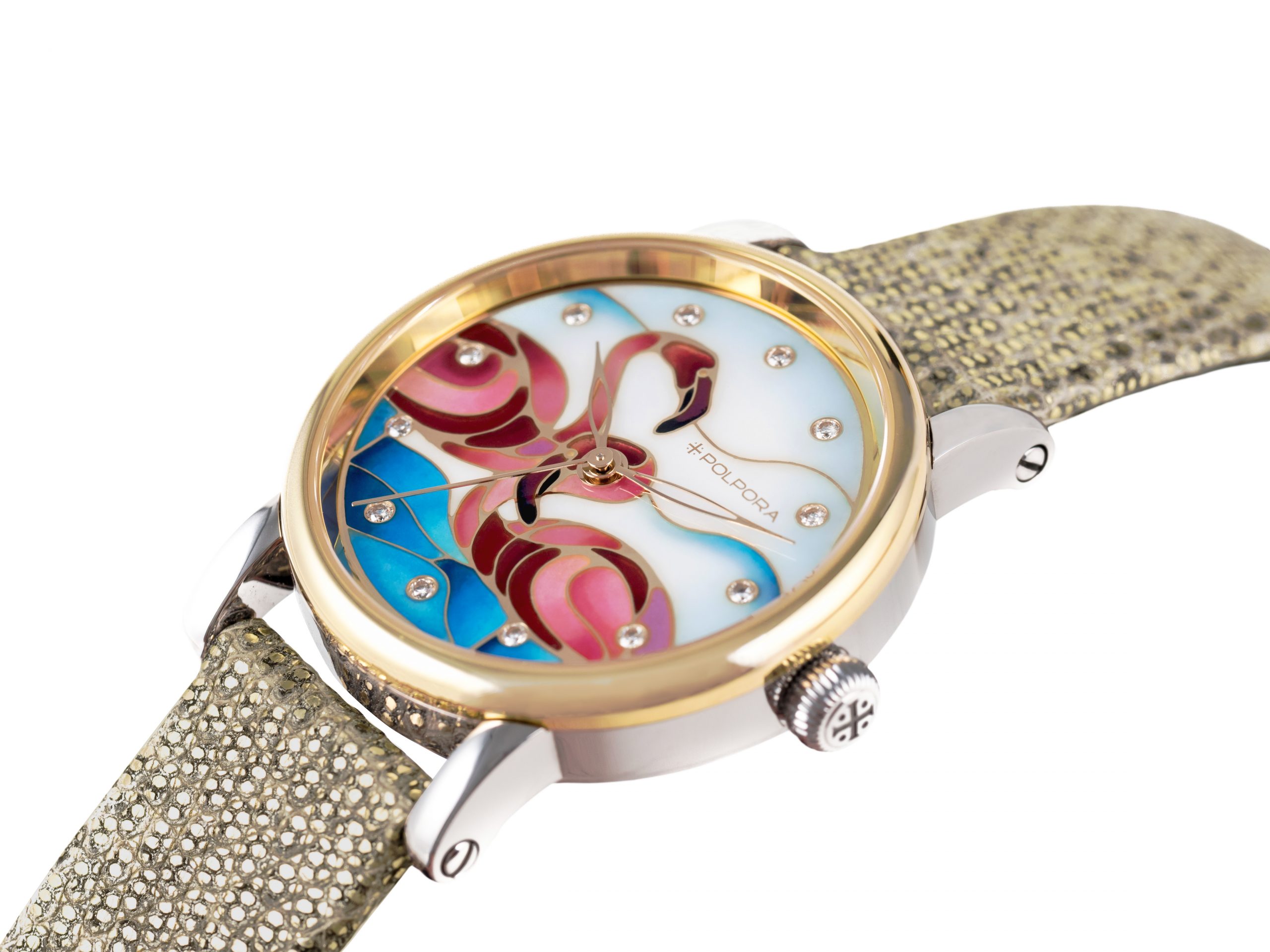 Kolekcja Wena wzbogaciła się właśnie o nowy damski zegarek automatyczny. Po premierze emaliowanego zegarka Irysy, który zdobył nominację w konkursie Zegarek Roku portalu CH24.pl, rozpoczęliśmy prace nad kolejnym projektem. Nowy zegarek nosi nazwę POLPORA Flamingi i jest wykonywany w bardzo zaawansowanej technice emalierskiej, a jego pierwsze egzemplarze właśnie ujrzały światło dzienne.