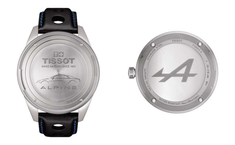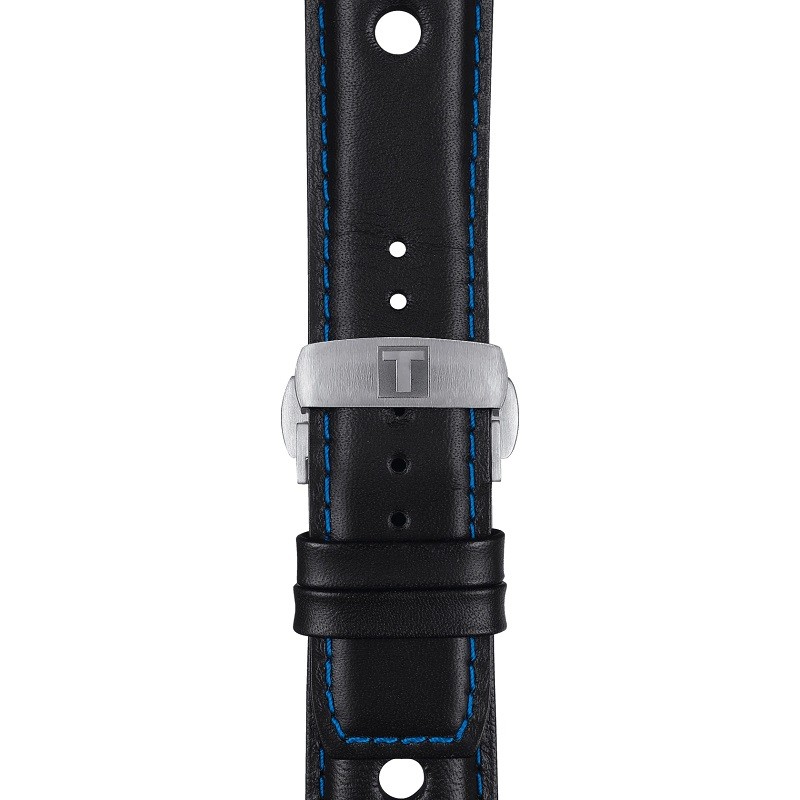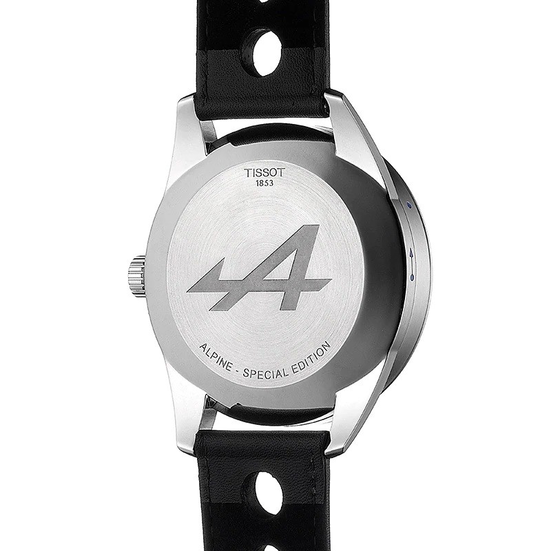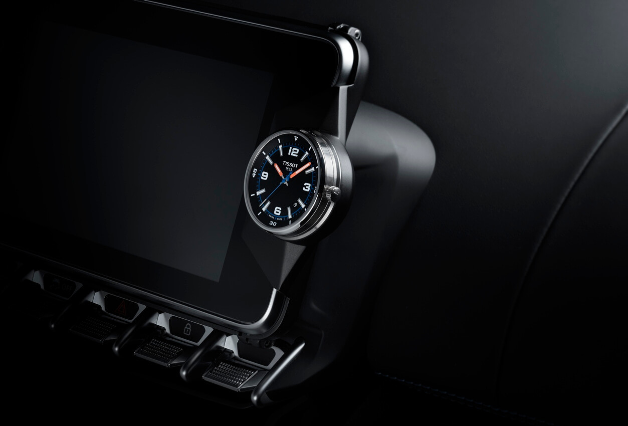 Zegarek Tissot Alpine On Board 2019 T123.610.16.057.00 to sportowy zegarek na skórzanym pasku, który powstał we współpracy ze znakomitym producentem samochodów, firmą Alpine. Koperta otrzymała rozmiar 45 mm, co jest wartością optymalną dla tego typu czasomierzy i wykonana została ze stali szlachetnej 316L. Specjalna konstrukcja koperty pozwala nam na wypięcie zegarka z obudowy i umieszczenie go w kokpicie samochodu Alpine. Stal jest materiałem bardzo wytrzymałym, poddającym się dość łatwej obróbce, co pozwala na tworzenie kopert i bransolet o niesamowitych kształtach. Wykonany z naturalnej skóry, czarny pasek, został idealnie dopasowany do obudowy, dzięki czemu możemy liczyć na bardzo wysoki komfort użytkowania. Na uwagę zasługuje bardzo wygodne zapięcie motylkowe, które ułatwia zakładanie i zdejmowanie zegarka. Tarcza otrzymała wyraziste indeksy oraz pomarańczowe wskazówki, które idealnie kontrastują z czarną, bardzo czytelną tarczą zegarka. Odpowiednio wykonany cyferblat oraz okienko datownika ożywiają czasomierz i nadają mu odpowiedniego charakteru. W celu zapewnienia odpowiedniej przejrzystości oraz wytrzymałości Tissot stosuje najwyższej jakości szkła szafirowe, które oferują celującą wręcz odporność na zarysowania. Wodoszczelność została ustalona na poziomie 100 m/10 ATM, co wydaje się być wartością wręcz idealną. Zachlapanie, mycie rąk a nawet deszcz nie będą mieć wpływu na pracę mechanizmu. Czasomierz napędzany jest poprzez najwyższej jakości szwajcarski mechanizm kwarcowy zasilany baterią. Jest to oczywiście mechanizm, który zapewni nam precyzję i dokładność chodu na najwyższym poziomie.