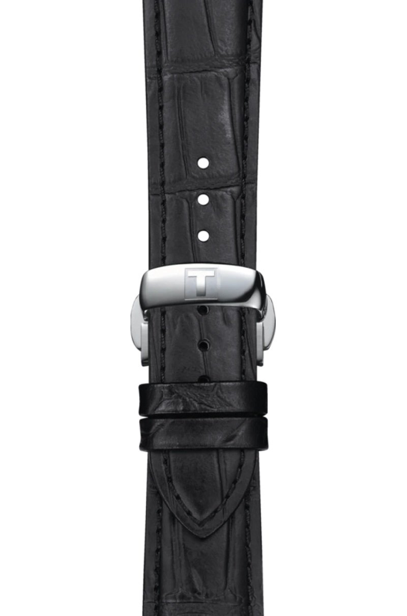 Zegarek Tissot Gentleman T127.410.16.051.01 to elegancki męski zegarek na skórzanym pasku. Koperta otrzymała rozmiar 40 mm, co jest wartością optymalną dla tego typu czasomierzy i wykonana została ze stali szlachetnej 316L. Stal jest materiałem bardzo wytrzymałym, poddającym się dość łatwej obróbce, co pozwala na tworzenie kopert i bransolet o niesamowitych kształtach. Wykonany z naturalnej skóry pasek, został idealnie dopasowany do obudowy, dzięki czemu możemy liczyć na bardzo wysoki komfort użytkowania. Na uwagę zasługuje bardzo wygodne zapięcie motylkowe, które ułatwia zakładanie i zdejmowanie zegarka. Tarcza otrzymała wyraziste indeksy oraz wskazówki w srebrnym kolorze, które idealnie kontrastują z szro-grafitową, bardzo czytelną tarczą zegarka. Odpowiednio wykonany cyferblat oraz okienko datownika umieszczone na godz. 3 ożywiają czasomierz i nadają mu odpowiedniego charakteru. W celu zapewnienia odpowiedniej przejrzystości oraz wytrzymałości Tissot stosuje najwyższej jakości szkła szafirowe, które oferują celującą wręcz odporność na zarysowania. Wodoszczelność została ustalona na poziomie 100 m/10 ATM, co wydaje się być wartością wręcz idealną. Zachlapanie, mycie rąk a nawet deszcz nie będą mieć wpływu na pracę mechanizmu. Czasomierz napędzany jest poprzez najwyższej jakości szwajcarski mechanizm kwarcowy zasilany baterią. Jest to oczywiście mechanizm, który zapewni nam precyzję i dokładność chodu na najwyższym poziomie.