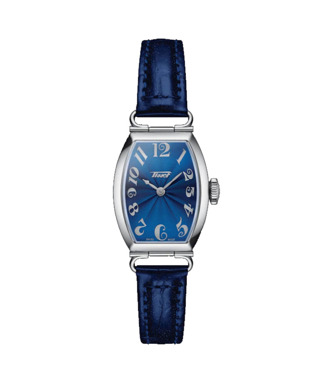 Zegarek Tissot HERITAGE PORTO SMALL LADY T128.109.16.042.00 to elegancki damski zegarek na skórzanym pasku. Stalowa, srebrzysta, oryginalnie zaprojektowana i wykonana koperta ma szerokość 22 milimetry, wysokość ok, 33 milimetry i grubość ok. 8,5 milimetra.