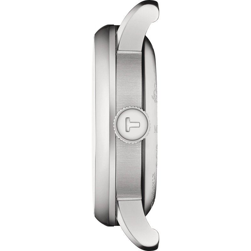 Zegarek Tissot Le Locle T006.428.11.052.00 to klasyczny, męski zegarek na stalowej bransolecie. Koperta otrzymała rozmiar 39,3 mm, co jest wartością optymalną dla tego typu czasomierzy i wykonana została ze stali szlachetnej 316L. Stal jest materiałem bardzo wytrzymałym, poddającym się dość łatwej obróbce, co pozwala na tworzenie kopert i bransolet o niesamowitych kształtach. Wykonana z drobnych, polerownych ogniw bransoleta, została idealnie dopasowana do obudowy, dzięki czemu możemy liczyć na bardzo wysoki komfort użytkowania. Tarcza otrzymała wyraziste cyfry arabskie oraz wskazówki w srebrnym kolorze, które idealnie kontrastują z czarną, bardzo czytelną tarczą zegarka. Natomiast perfekcyjnie wykonany cyferblat, tarcza sekundnika oraz datownik umieszczony na godz. 3 nadają mu odpowiedniego charakteru. W celu zapewnienia odpowiedniej przejrzystości oraz wytrzymałości Tissot stosuje najwyższej jakości szkła szafirowe, które oferują celującą wręcz odporność na zarysowania. Wodoszczelność została ustalona na poziomie 30 m/3 ATM, co wydaje się być wartością wręcz idealną. Zachlapanie, mycie rąk a nawet deszcz nie będą wpływać negatywnie na pracę mechanizmu. Czasomierz napędzany jest poprzez najwyższej jakości szwajcarski mechanizm z automatycznym naciągiem. Jest to oczywiście mechanizm, który zapewni nam precyzję i dokładność chodu na najwyższym poziomie.