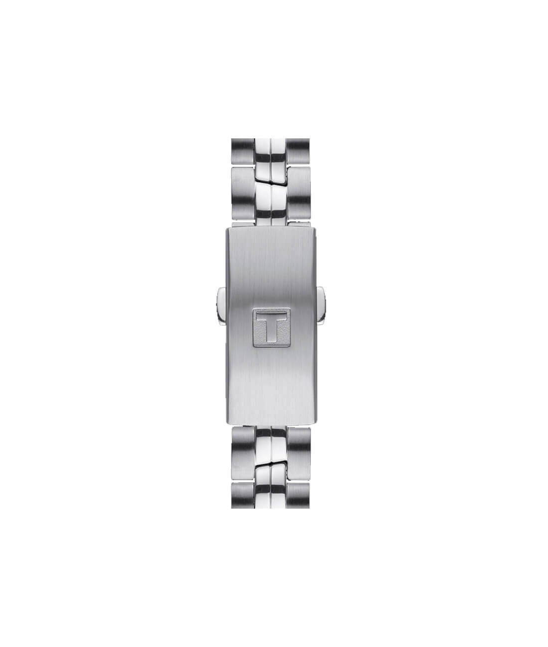 Zegarek Tissot PR100 Lady T101.010.11.061.00 to klasyczny, damski zegarek na stalowej bransolecie. Koperta otrzymała rozmiar 25 mm, co jest wartością optymalną dla tego typu czasomierzy i wykonana została ze stali szlachetnej 316L. Stal jest materiałem bardzo wytrzymałym, poddającym się dość łatwej obróbce, co pozwala na tworzenie kopert i bransolet o niesamowitych kształtach. Wykonana z drobnych, polerownych ogniw bransoleta, została idealnie dopasowana do obudowy, dzięki czemu możemy liczyć na bardzo wysoki komfort użytkowania. Tarcza otrzymała wyraziste indeksy oraz wskazówki w srebrnym kolorze, które idealnie kontrastują z grafitową, bardzo czytelną tarczą zegarka. Natomiast perfekcyjnie wykonany cyferblat oraz datownik umieszczony na godz. 6 nadają mu odpowiedniego charakteru. W celu zapewnienia odpowiedniej przejrzystości oraz wytrzymałości Tissot stosuje najwyższej jakości szkła szafirowe, które oferują celującą wręcz odporność na zarysowania. Wodoszczelność została ustalona na poziomie 100 m/10 ATM, co wydaje się być wartością wręcz idealną. Zachlapanie, mycie rąk a nawet deszcz nie będą wpływać negatywnie na pracę mechanizmu. Czasomierz napędzany jest poprzez najwyższej jakości szwajcarski mechanizm kwarcowy zasilany baterią. Jest to oczywiście mechanizm, który zapewni nam precyzję i dokładność chodu na najwyższym poziomie.