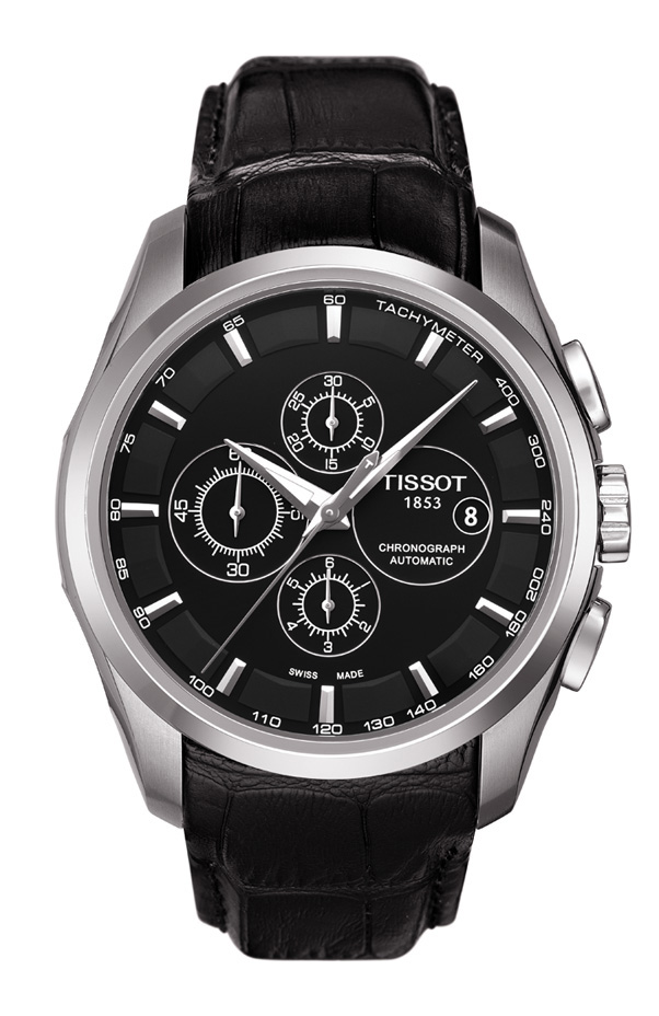 Zegarek Tissot T-Trend Couturier T035.627.16.051.00 to sportowy, męski zegarek na czarnym skórzanym pasku. Koperta otrzymała rozmiar 43 mm, co jest wartością optymalną dla tego typu czasomierzy i wykonana została ze stali szlachetnej 316L. Stal jest materiałem bardzo wytrzymałym, poddającym się dość łatwej obróbce, co pozwala na tworzenie kopert i bransolet o niesamowitych kształtach. Wykonany z naturalnej skóry pasek, został idealnie dopasowany do obudowy, dzięki czemu możemy liczyć na bardzo wysoki komfort użytkowania. Na uwagę zasługuje bardzo wygodne zapięcie które ułatwia zakładanie i zdejmowanie zegarka. Tarcza otrzymała wyraziste indeksy oraz wskazówki w kolorze srebra, które idealnie kontrastują z czarną, bardzo czytelną tarczą zegarka. Odpowiednio wykonany cyferblat, liczniki chronografu oraz okienko datownika ożywiają czasomierz i nadają mu odpowiedniego charakteru. Stoper – powszechnie nazywany także „chronografem” to dodatkowy moduł zegarka pozwalające na pomiar krótkich odcinków czasu. Rozbudowany stoper może pozwalać także na pomiar międzyczasów – stoper z doganiającą wskazówką (Rattrapante). W celu zapewnienia odpowiedniej przejrzystości oraz wytrzymałości Tissot stosuje najwyższej jakości szkła szafirowe, które oferują celującą wręcz odporność na zarysowania. Wodoszczelność została ustalona na poziomie 100 m/10 ATM, co wydaje się być wartością wręcz idealną. Zachlapanie, mycie rąk a nawet deszcz nie będą mieć wpływu na pracę mechanizmu. Czasomierz napędzany jest poprzez najwyższej jakości szwajcarski mechanizm z automatycznym naciągiem. Jest to oczywiście mechanizm, który zapewni nam precyzję i dokładność chodu na najwyższym poziomie.
